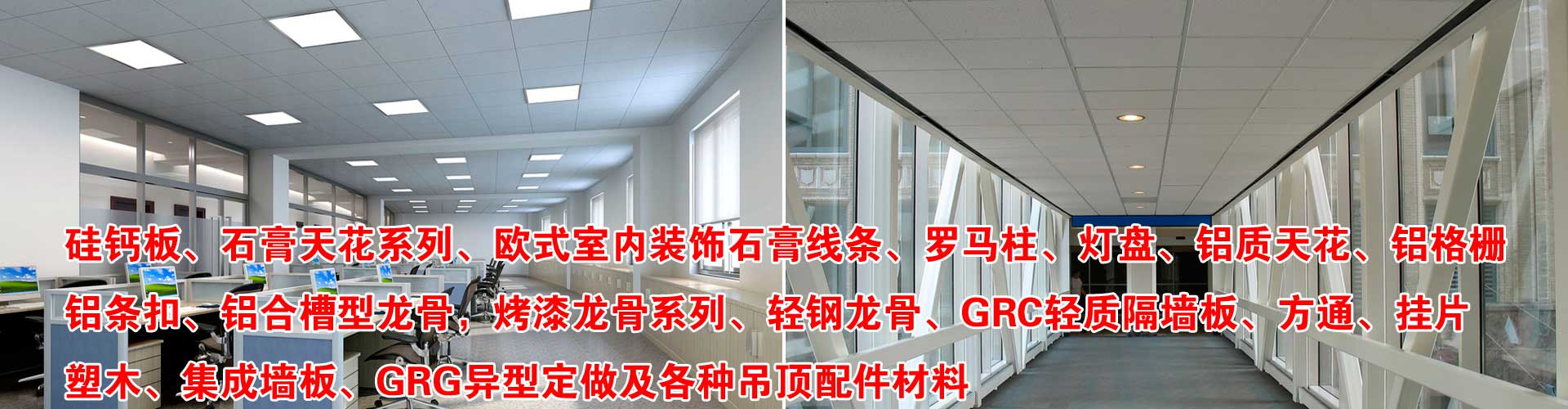 名揚裝飾材料廠價直銷部成立于2007年,主要經營防水防火高強硅鈣板、石膏天花系列、歐式室內裝飾石膏線條、羅馬柱、燈盤、鋁質天花、鋁格柵、鋁條扣、鋁合槽型龍骨,烤漆龍骨系列、輕鋼龍骨、GRC輕質隔墻板、方通、掛片、塑木、集成墻板、GRG異型定做及各種吊頂配件材料,名揚專業承接吊頂安裝工程等室內外一切裝飾工程。